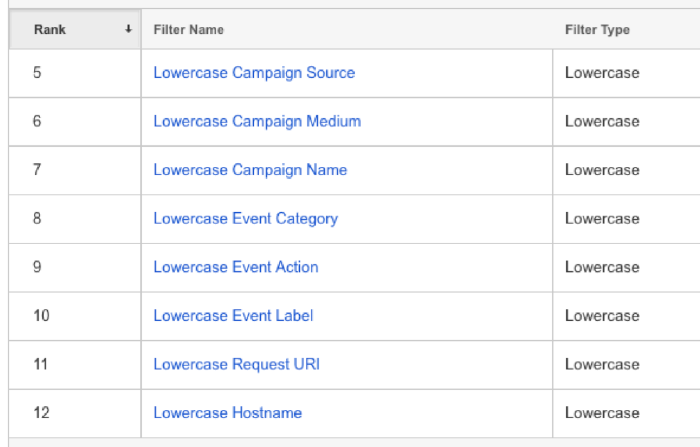 Another area that sometimes throws off analytics is capitalization. I’ll send out a campaign named “October Lead Generation”, but a developer tags it as “october lead generation”, which results in the creation of two separate campaigns in GA. The same can happen with events, host names, and even URLs. Personally, I just prefer everything uniform, so I create filters that make everything lower case - hostnames, URLs, campaigns, sources, mediums, event categories, actions and labels.