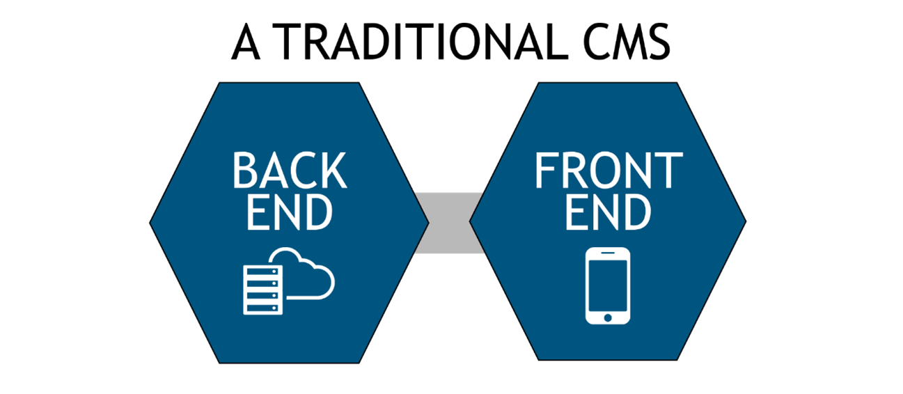 A traditional CMS is designed to be an all-in-one, out-of-the-box solution for a website’s content and design, providing both a joined back-end (database, content, content management interface) and front-end (the external presentation of your content to users) as a singular, unified platform.